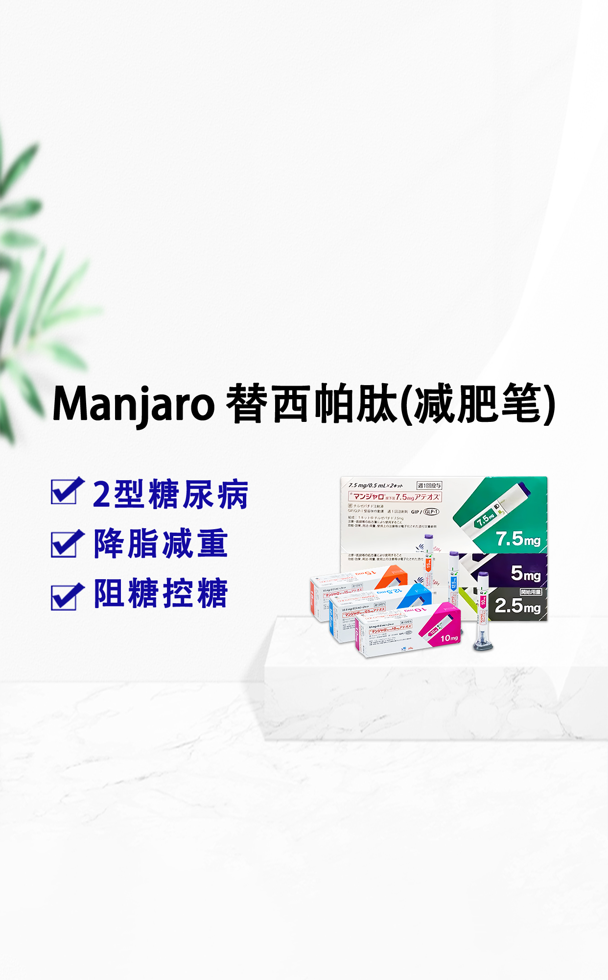 Manjaro替泽帕肽/替西帕肽/替尔帕肽 皮下注射剂长效GIP/GLP-1受体激动剂 5mg 2型糖尿病 阻糖控糖降脂减重 胰岛素 减肥 降糖 减肥笔